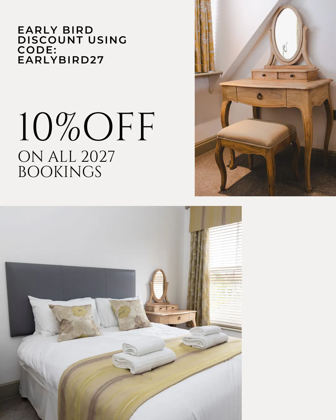10% Off all 2027 bookings until December 2026 - Using code EARLYBIRD27